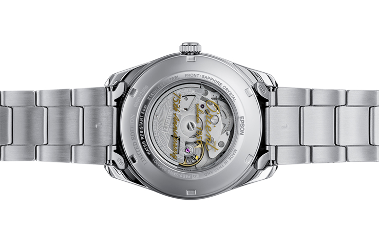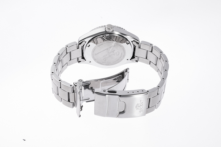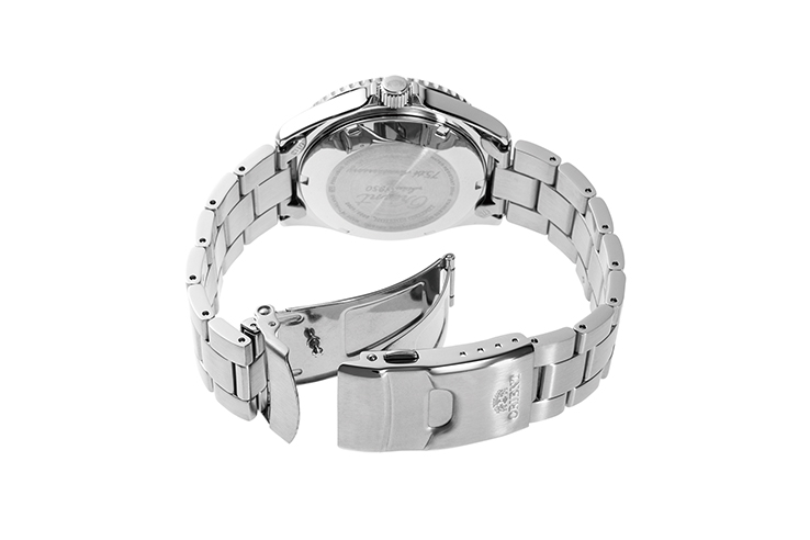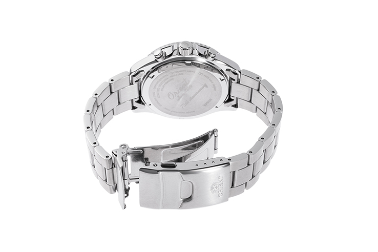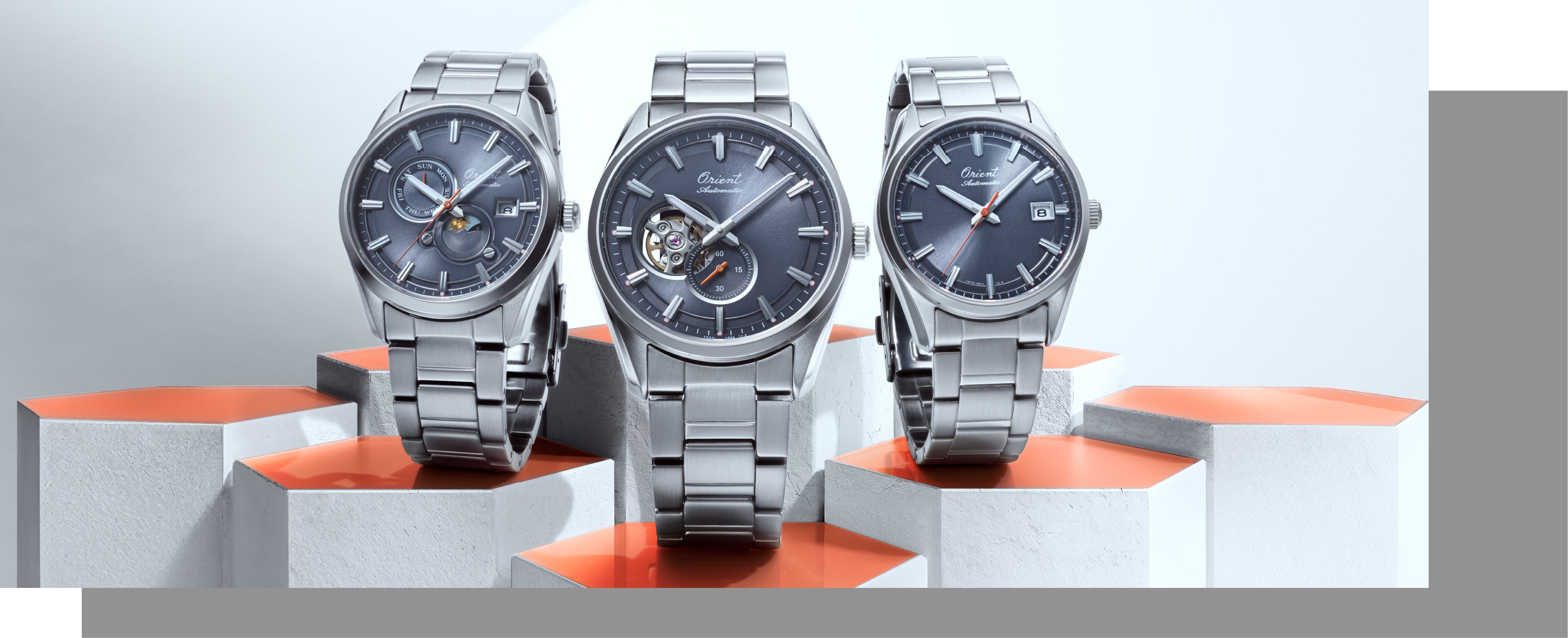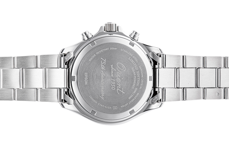Modelos Orient Stretto de 75º aniversário em edição limitada. O estilo urbano do Orient Stretto ganha realce com o efeito sunburst (raios de sol) em arco e com índices tridimensionais aplicados em harmonia com o mostrador cinza, cor raramente utilizada pela Orient. A aplicação da cor laranja nos ponteiros e ao redor dos índices luminosos confere um destaque expressivo ao aspecto monocromático do modelo. O fundo de caixa transparente traz a inscrição manuscrita ‘Orient Since 1950 75th Anniversary’, e o número de série individual também é gravado no verso do relógio. Cada modelo é acompanhado por um estojo especial comemorativo de 75 anos.