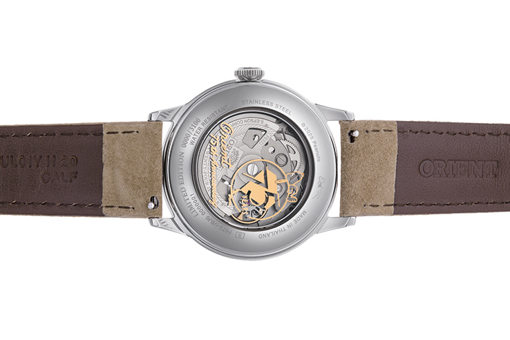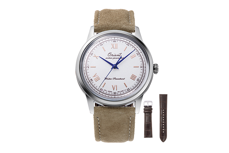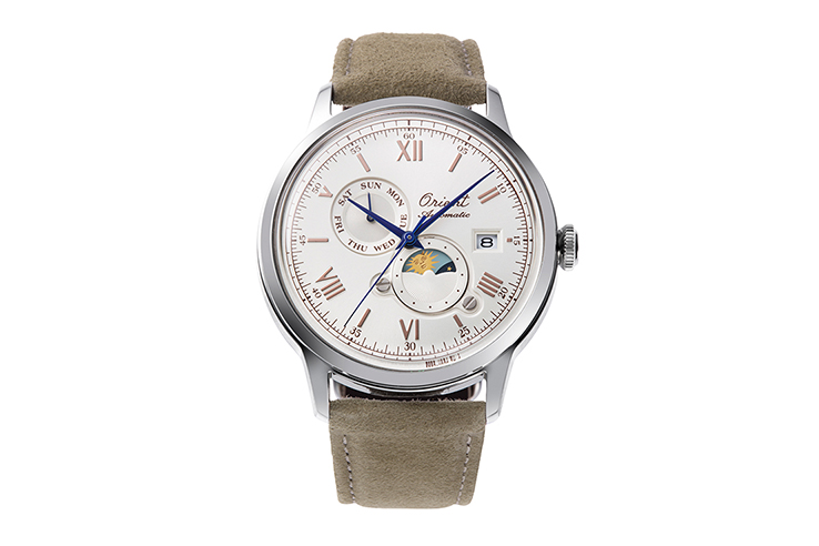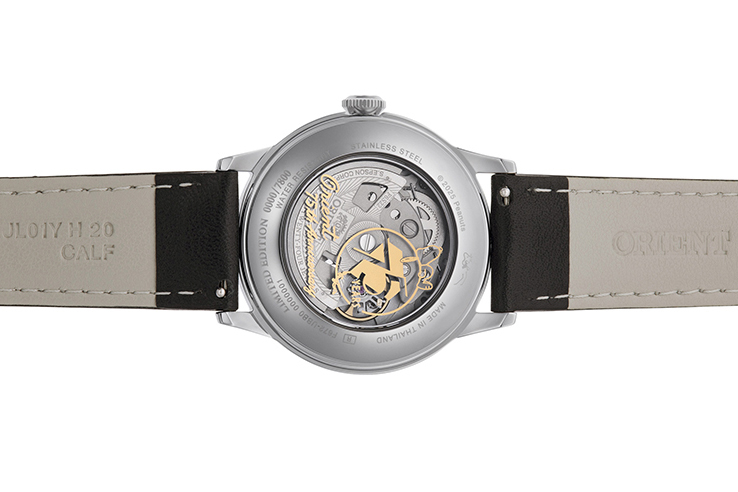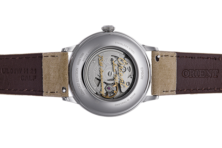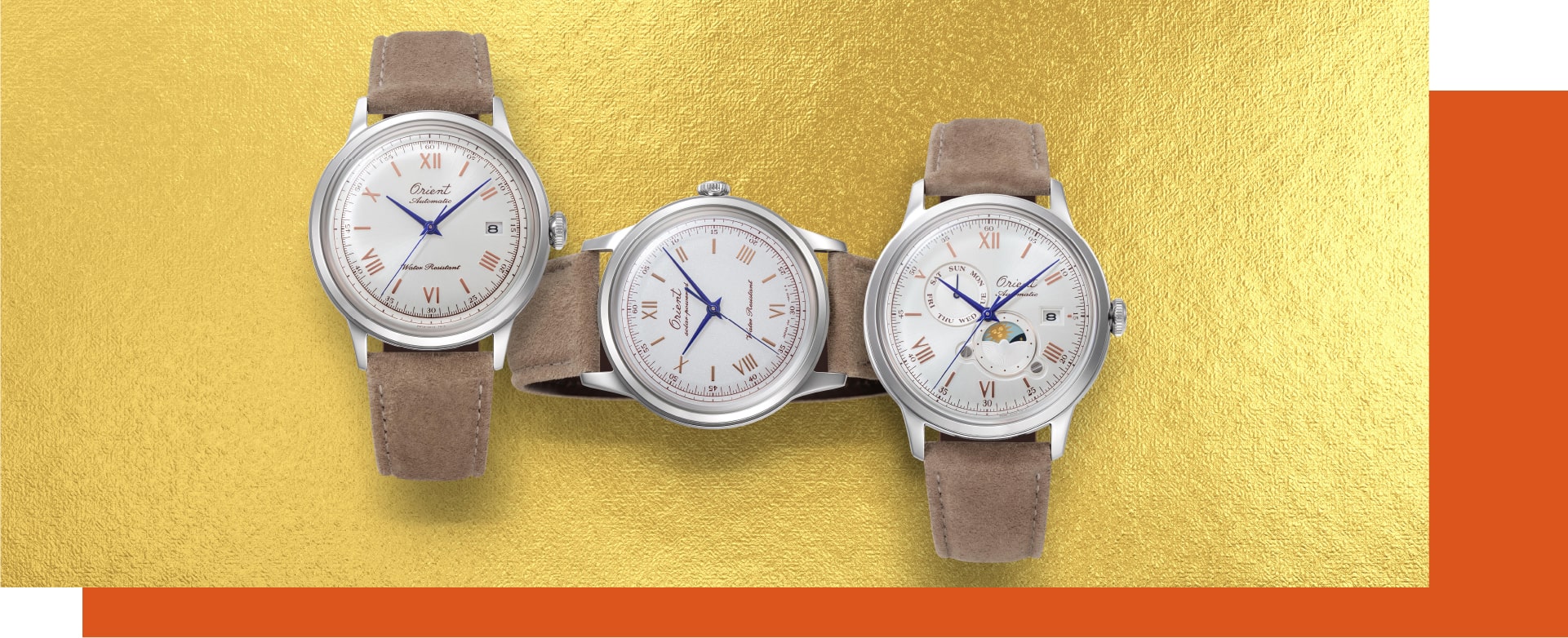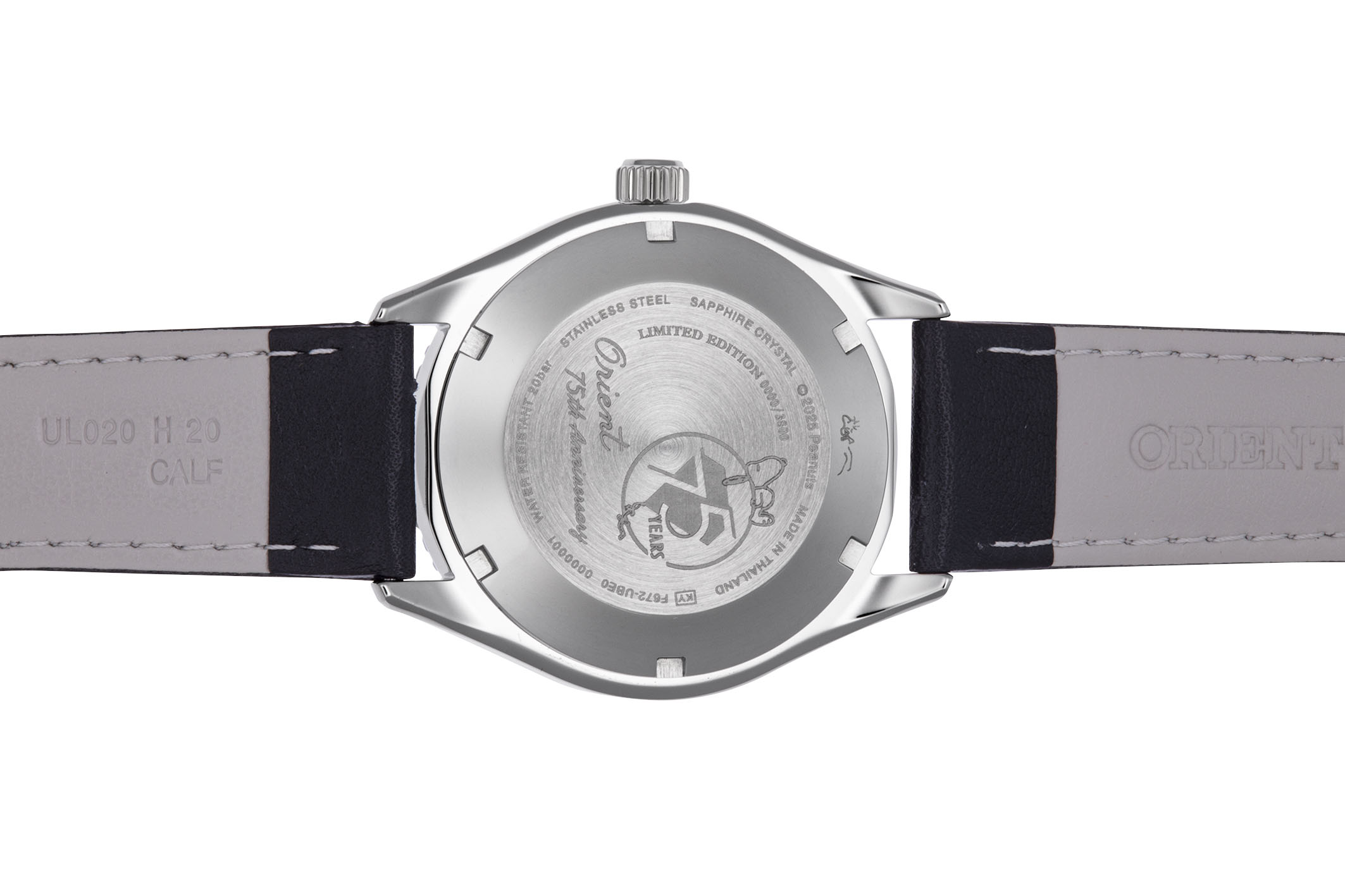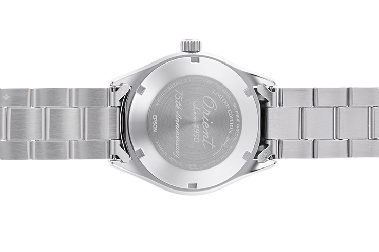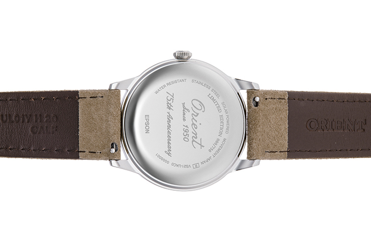 Edição de 75º aniversário do Orient Classic and Simple Style (Estilo Clássico e Simples). Com dimensões clássicas e design simples, porém envolvente, apresenta um visual refinado e elegante. Conhecido pelo mostrador curvo e pelo cristal box (vidro em forma de caixa), cria um efeito tridimensional variável conforme o ângulo da luz. A coleção pode ser combinada tanto com trajes de negócios quanto com roupas casuais, o que significa que este relógio pode ser usado em diversas ocasiões e apreciado por muitos anos.