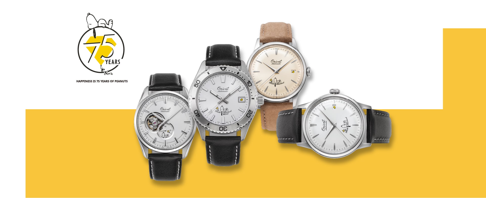 Esses modelos de edição limitada reúnem as marcas Orient e PEANUTS™, ambas comemorando seu 75º aniversário em 2025. Trazendo os personagens Snoopy e Woodstock da consagrada tirinha internacional PEANUTS™, o design original é um tributo irresistível para colecionadores e admiradores das duas marcas.