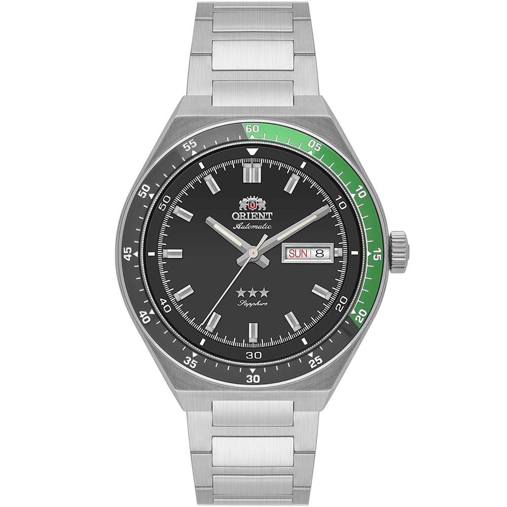 AUTOMÁTICO Gênero: Masculino Visor: Azul e preto Vidro: cristal de safira Funções: hacking, enrolamento manual, calendário duplo Pressão: 100m Características: com caixa em aço e pulseira em aço Diâmetro da caixa: 42 mm Preço sugerido: R$ 1.598,00