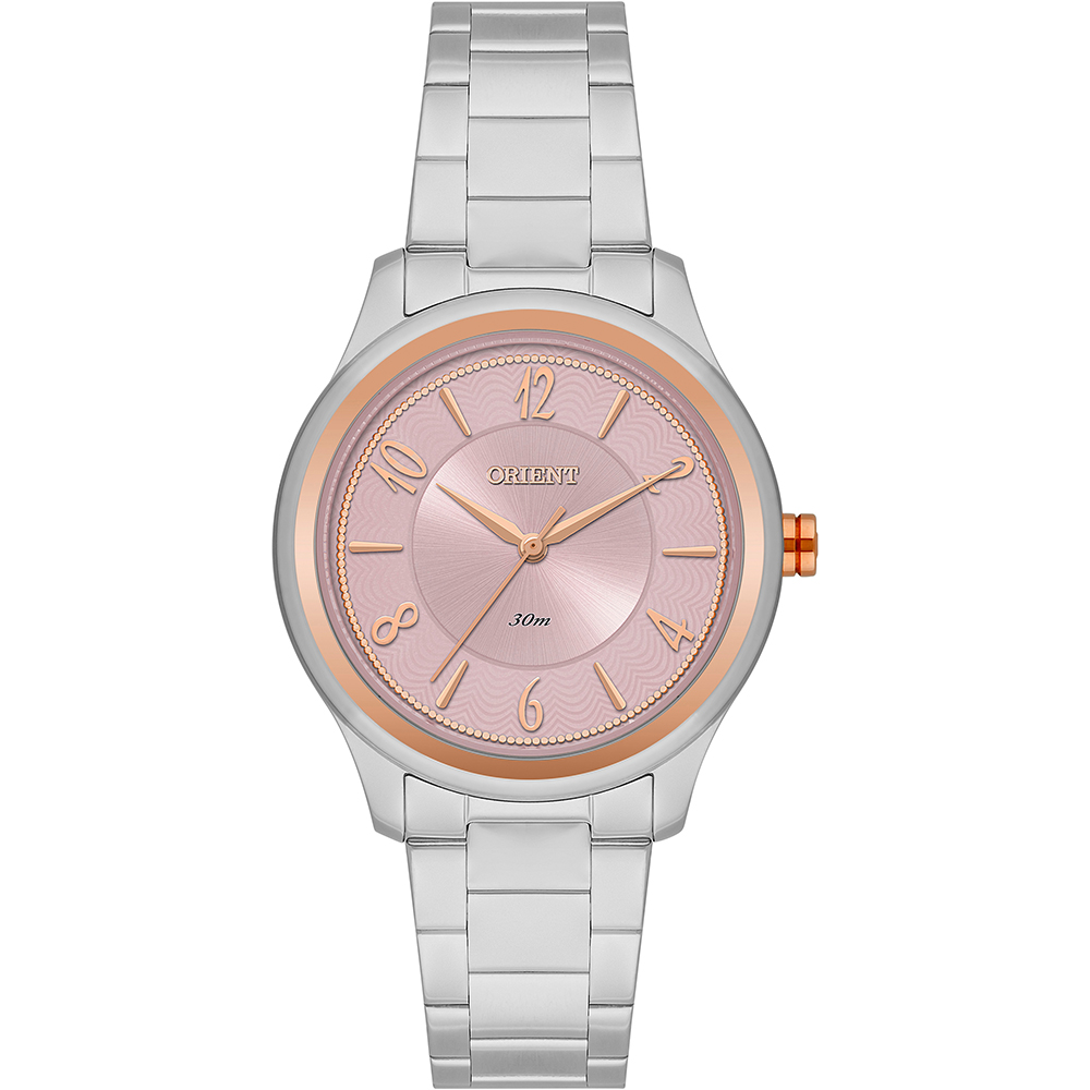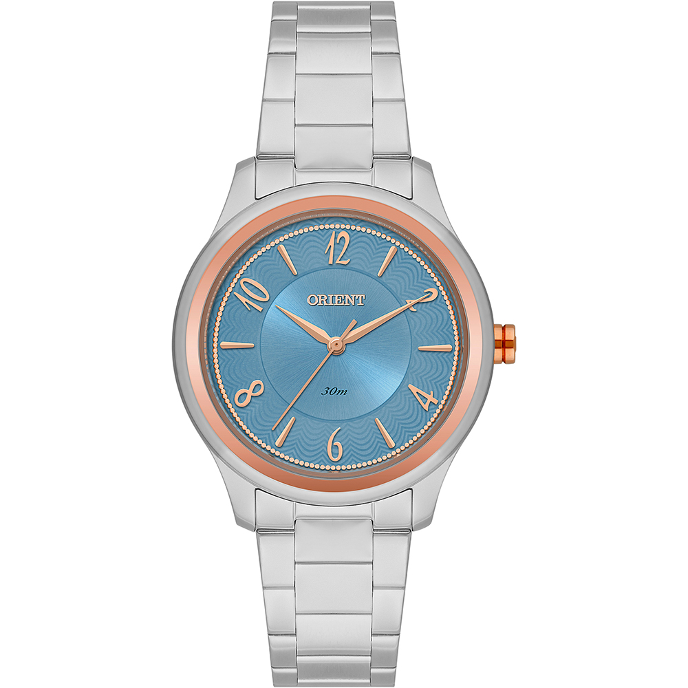 Analógico Gênero: Feminino Visor: Rosa e azul Vidro: cristal mineral Funções: mostrador sunray Pressão: 30m Características: com caixa em aço+iprg e pulseira em aço Diâmetro da caixa: 33 mm Preço sugerido: R$ 459,98