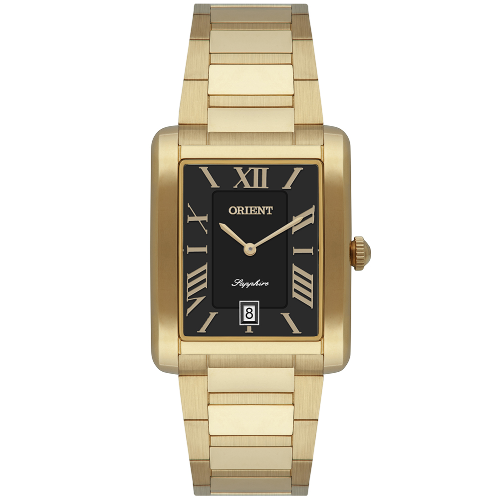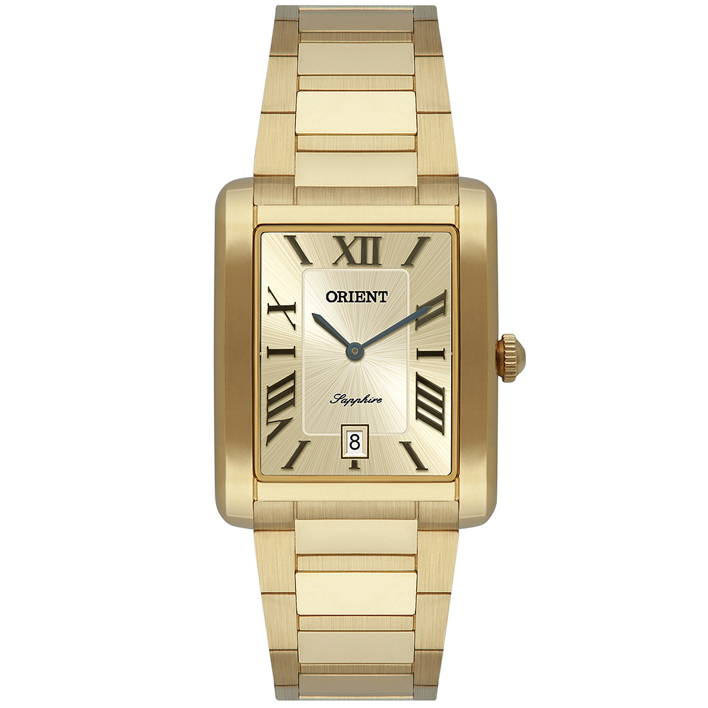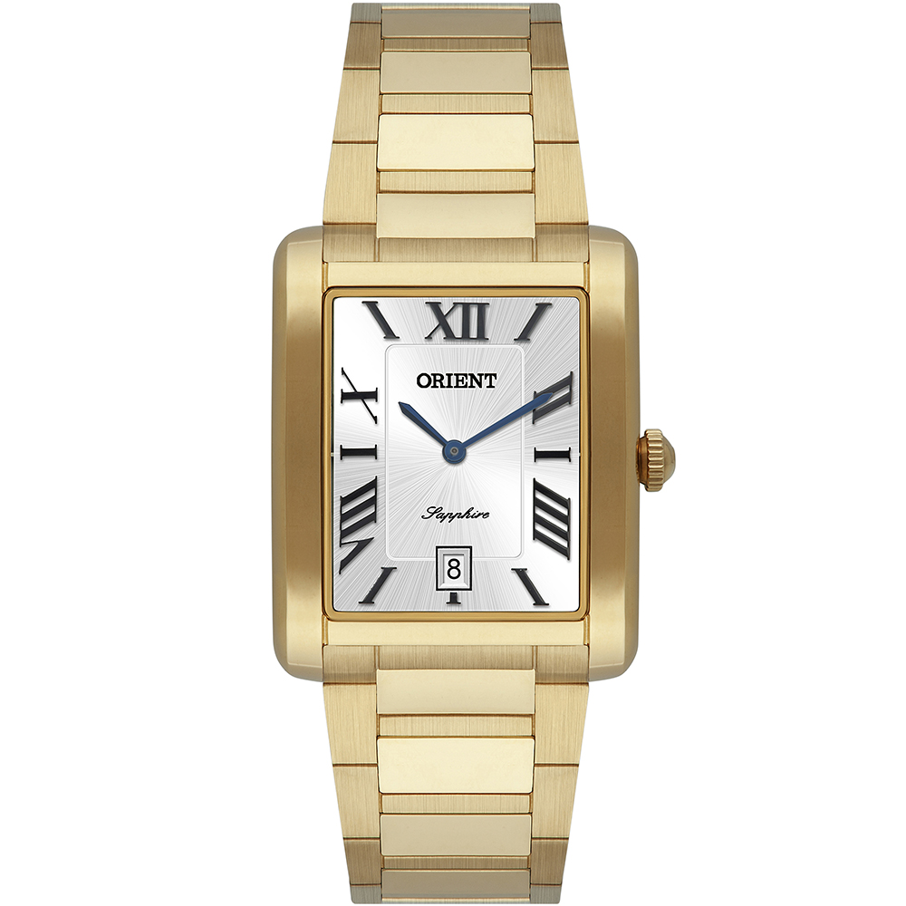 Analógico Gênero: Masculino Visor: Branco e Dourado Vidro: cristal de safira Funções: calendário, mostrador sunray Pressão: 30m Características: com caixa em aço+ipg e pulseira em aço+ipg Diâmetro da caixa: 29x30 mm Preço sugerido: R$ 1.198,00