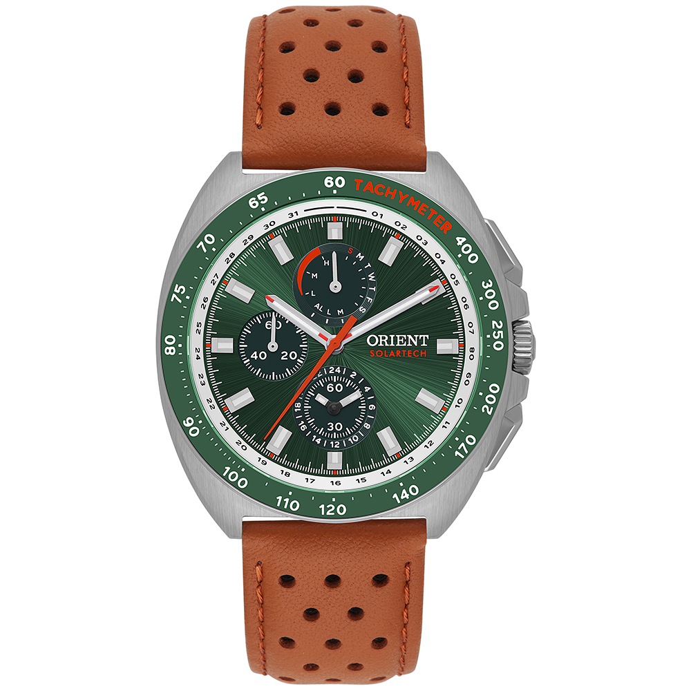 Funções: solartech com autônomia de 6 meses, calendário perpétuo, indicador am/pm, mostrador em camadas, alarme, indicador de nível de bateria