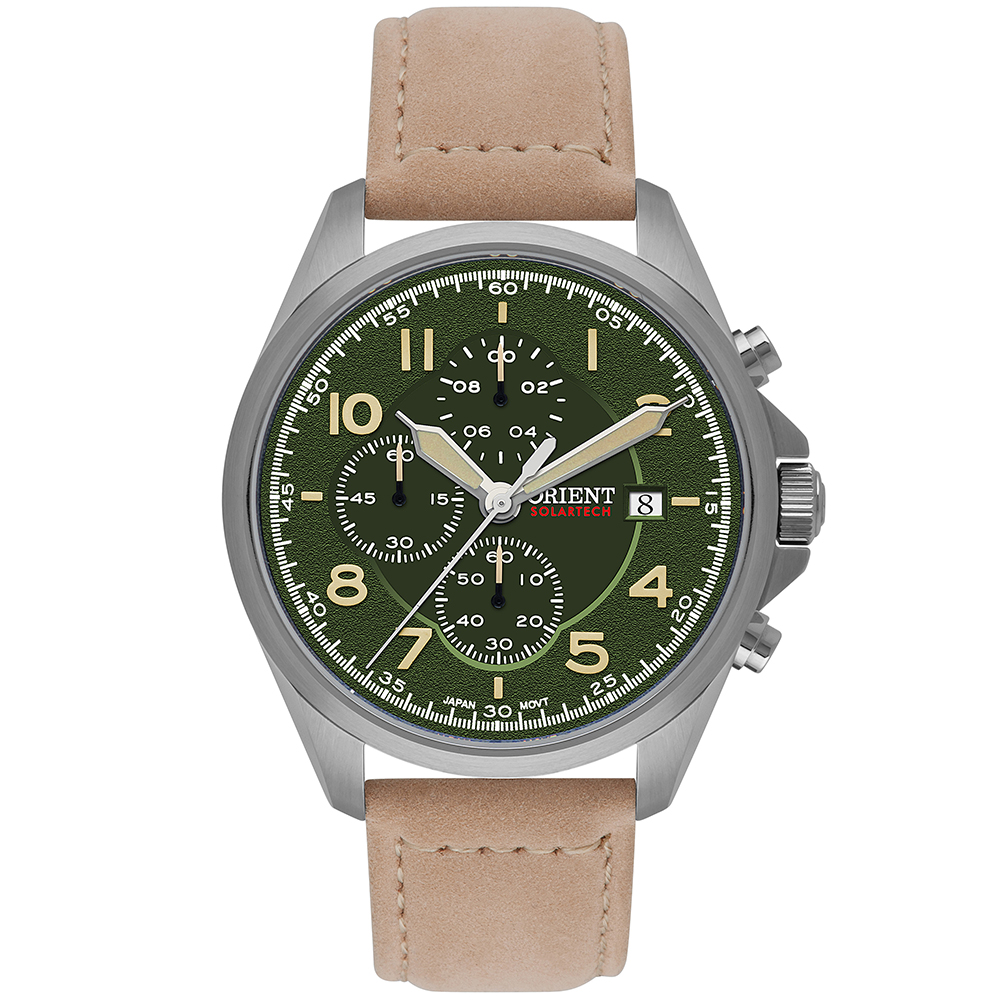 Funções: solartech com autonomia de 6 meses, indicador am/pm, calendário, mostrador em camadas
