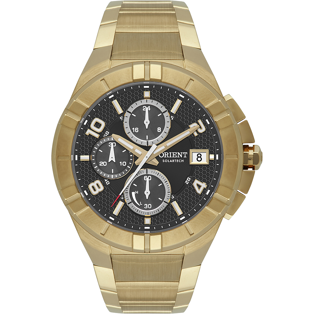 Funções: solartech com autonomia de 5 meses, indicador de autonomia, calendário, indicador am/pm, mostrador em camadas